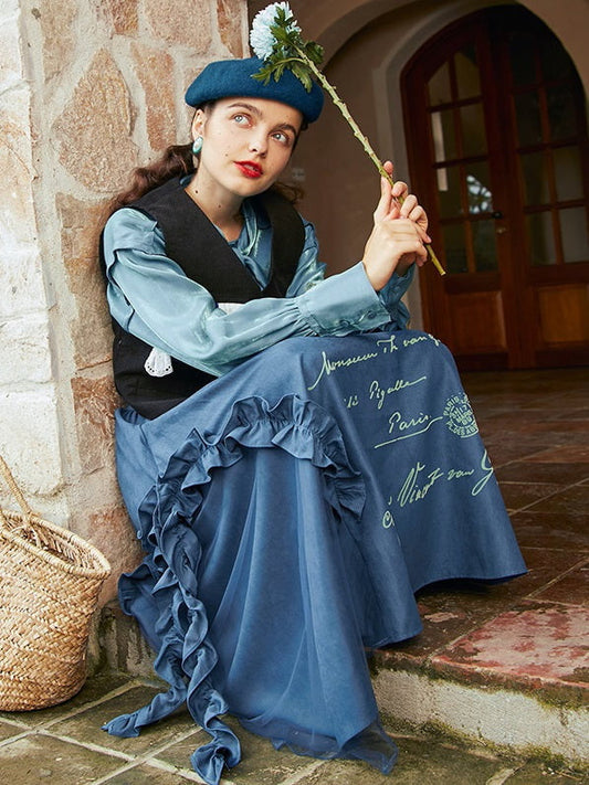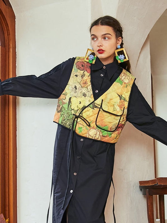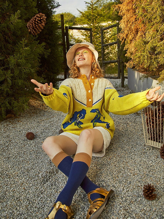 Van Gogh sunflowers Puff Sleeve Knitted Cardigan