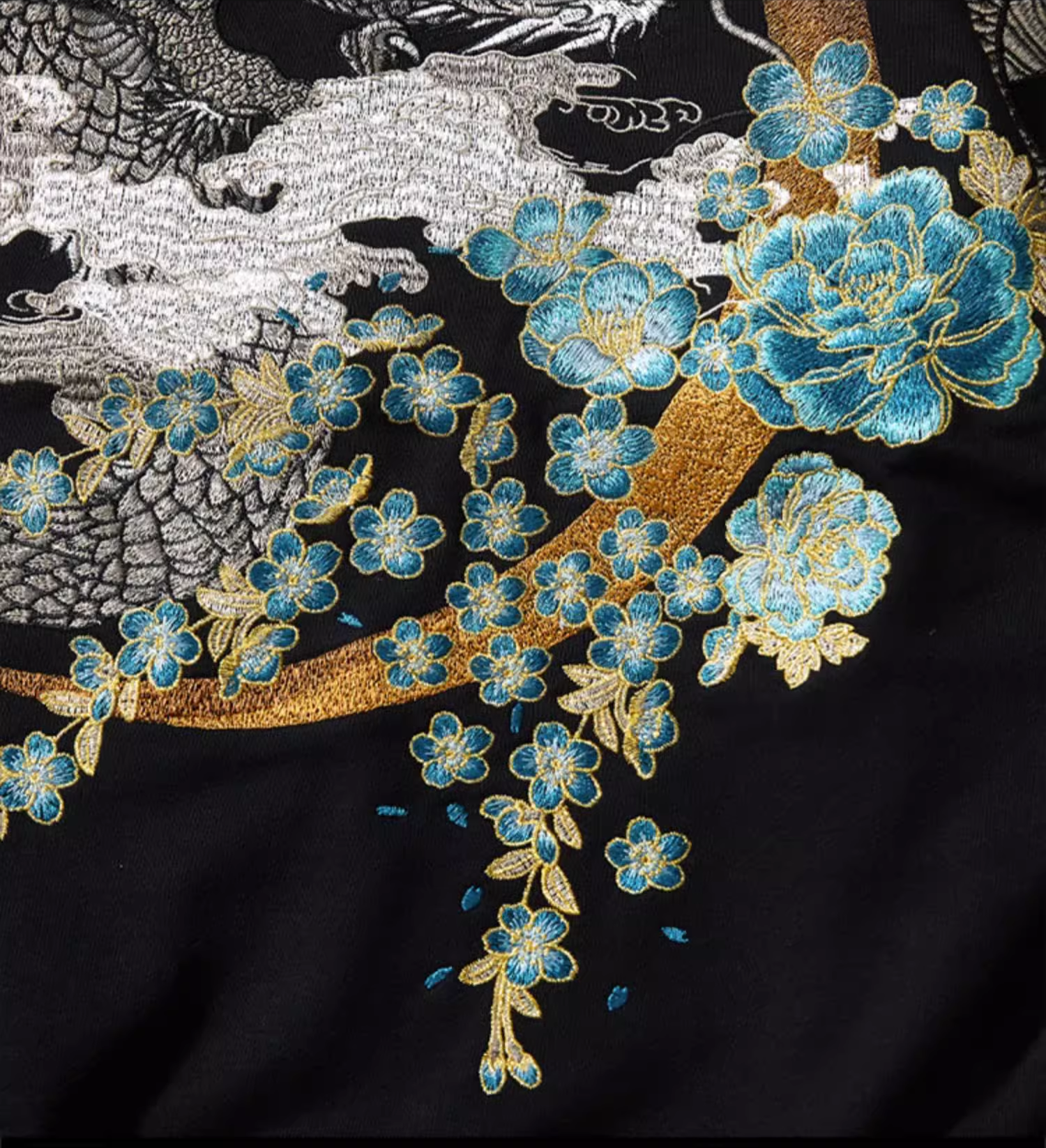Elevate your style with the Ryūjin Sakura Dragon Hoodie, a fusion of myth and artistry. Featuring an intricately embroidered dragon — the legendary sea god of Japanese folklore — intertwined with blooming sakura, it captures both strength and fleeting beauty.