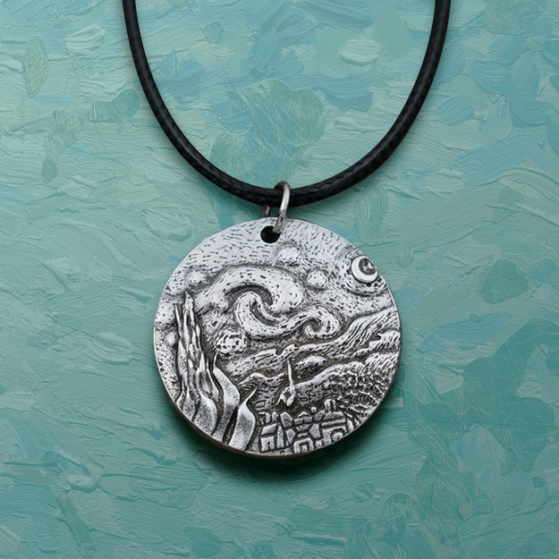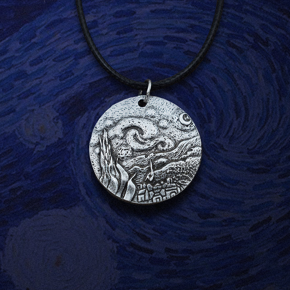 This Starry Night Necklace tells both sides of that story in a stunning way like never before, with engraving on both sides that's beautifully detailed and carefully crafted.