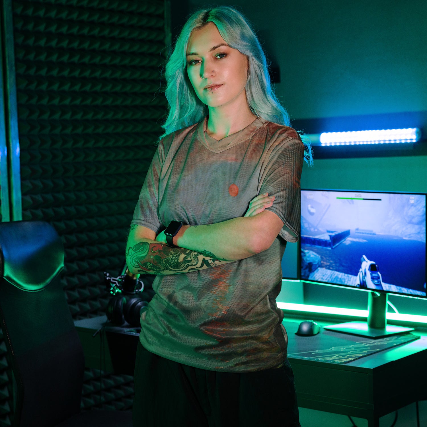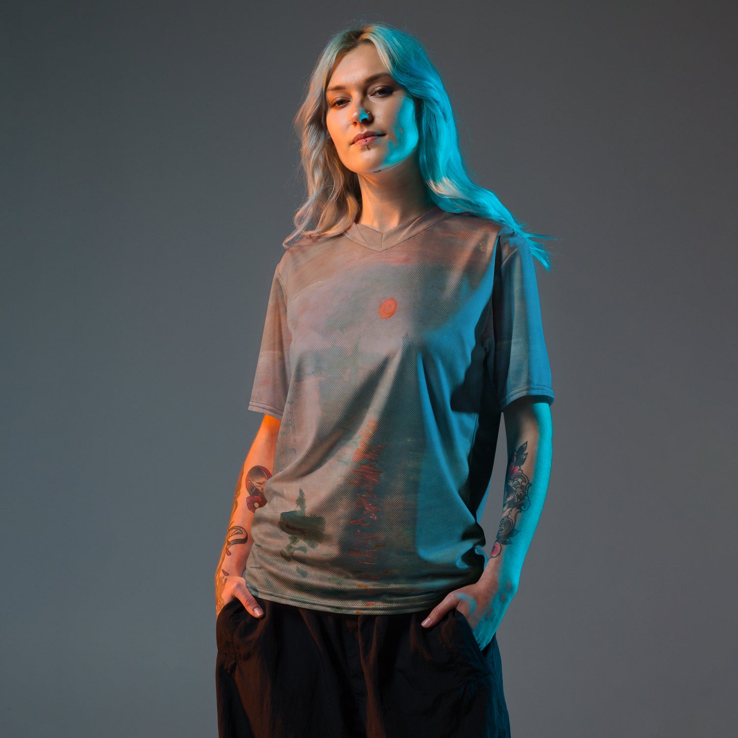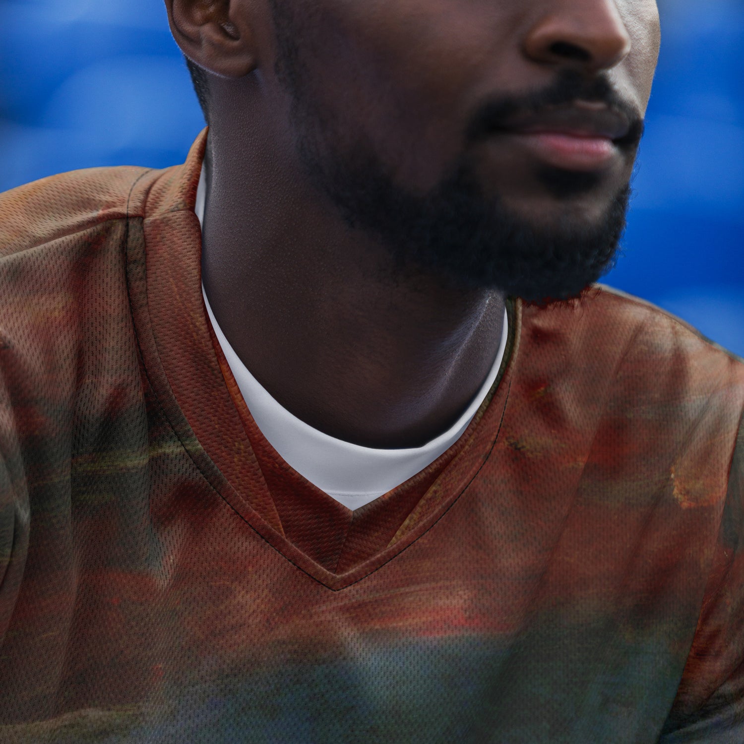 Looking for the perfect sports jersey? We have you covered—made of 100% recycled polyester fabric, this shirt is breathable, moisture-wicking, and has a double-layered v-neck collar that creates a premium look.