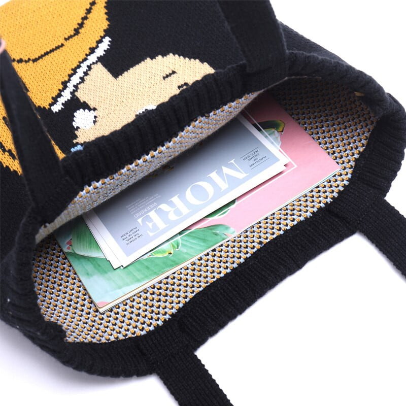 Learn more.Girl with a Pearl Earring knitted tote bag