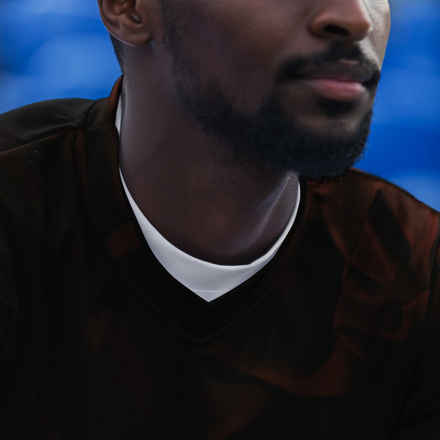 Looking for the perfect sports jersey? We have you covered—made of 100% recycled polyester fabric, this shirt is breathable, moisture-wicking, and has a double-layered v-neck collar that creates a premium look.