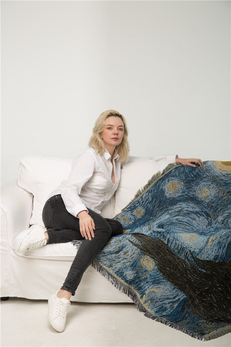 Our Van Gogh Woven blanket will bring the painter's most famous work "Starry Night" straight to our bedroom, living room or dorm. It also makes an excellent housewarming gift.