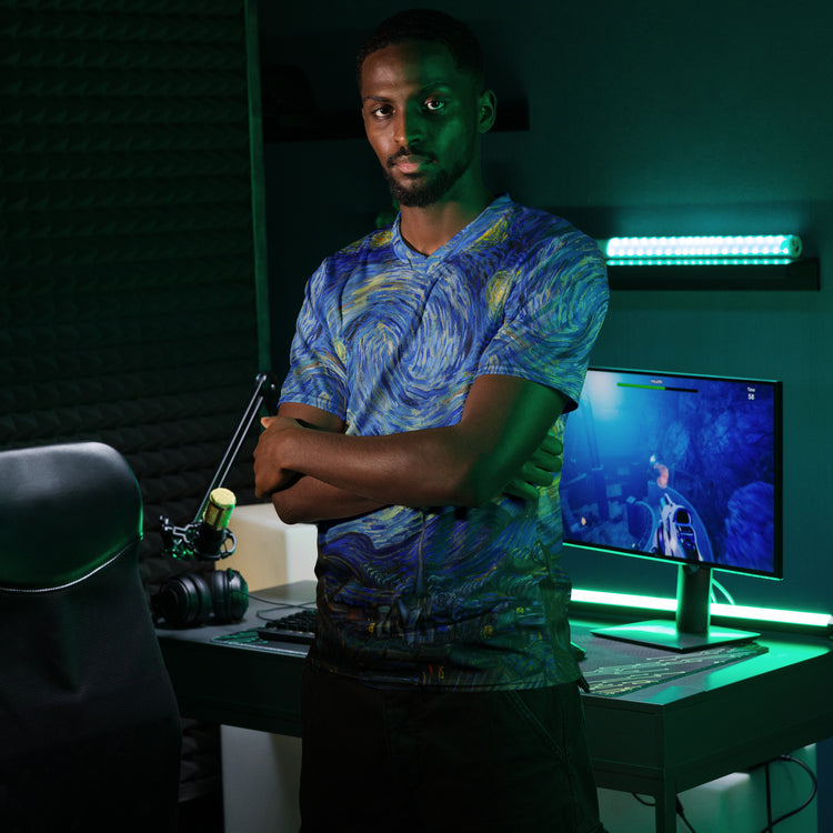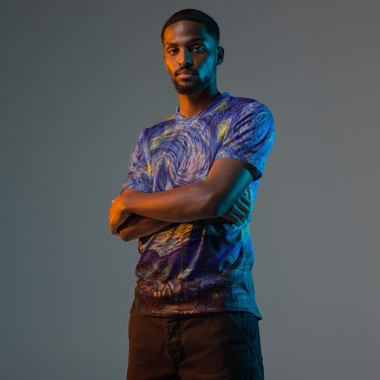 Looking for the perfect sports jersey? We have you covered—made of 100% recycled polyester fabric, this shirt is breathable, moisture-wicking, and has a double-layered v-neck collar that creates a premium look.