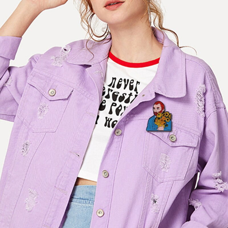 Learn more.Van Gogh with sunflowers enamel pin