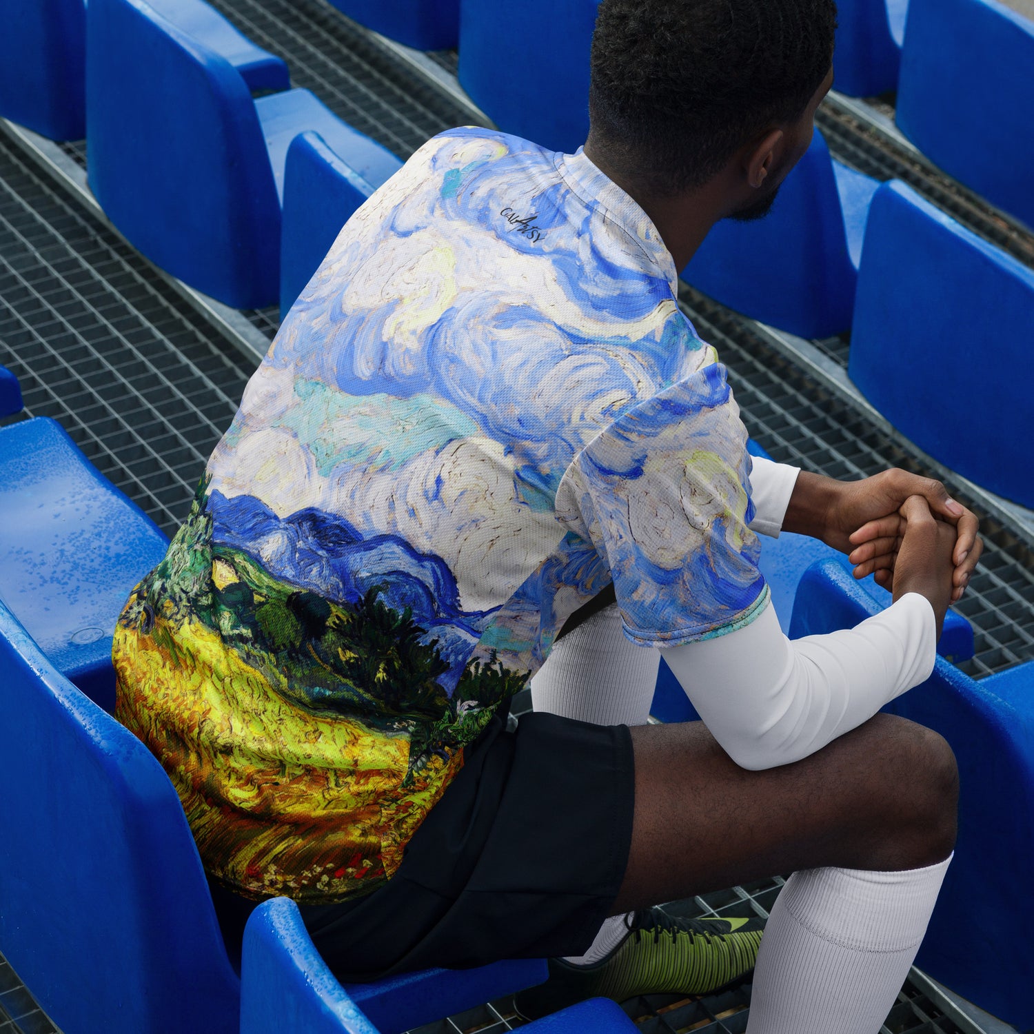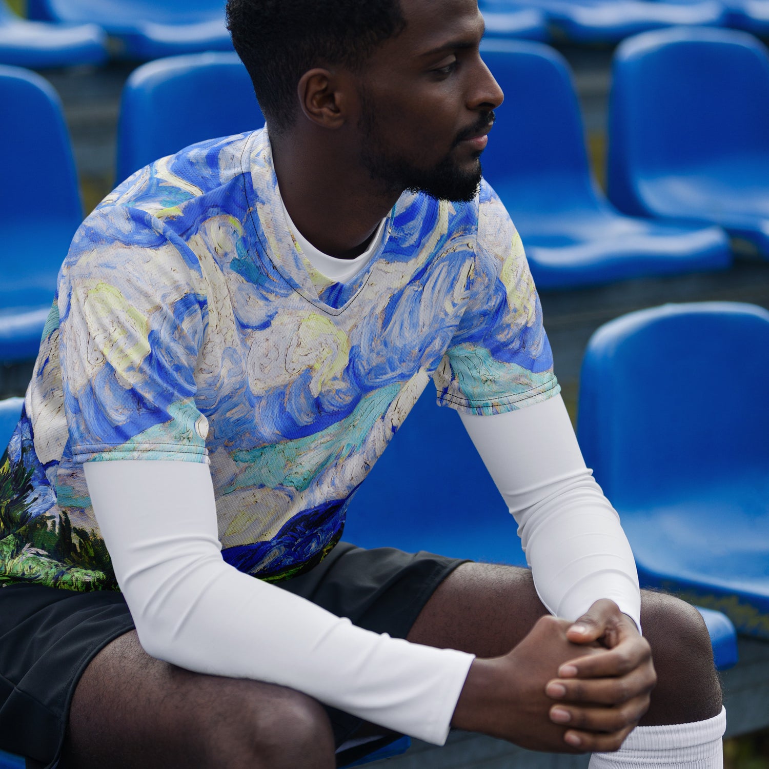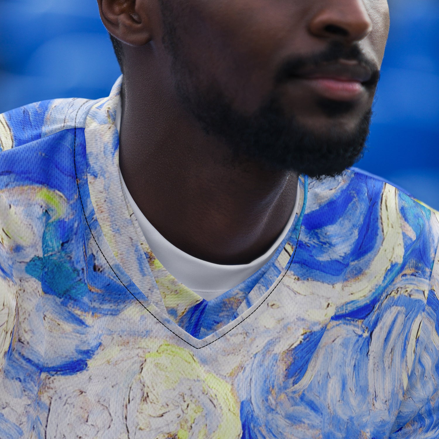 Looking for the perfect sports jersey? We have you covered—made of 100% recycled polyester fabric, this shirt is breathable, moisture-wicking, and has a double-layered v-neck collar that creates a premium look.