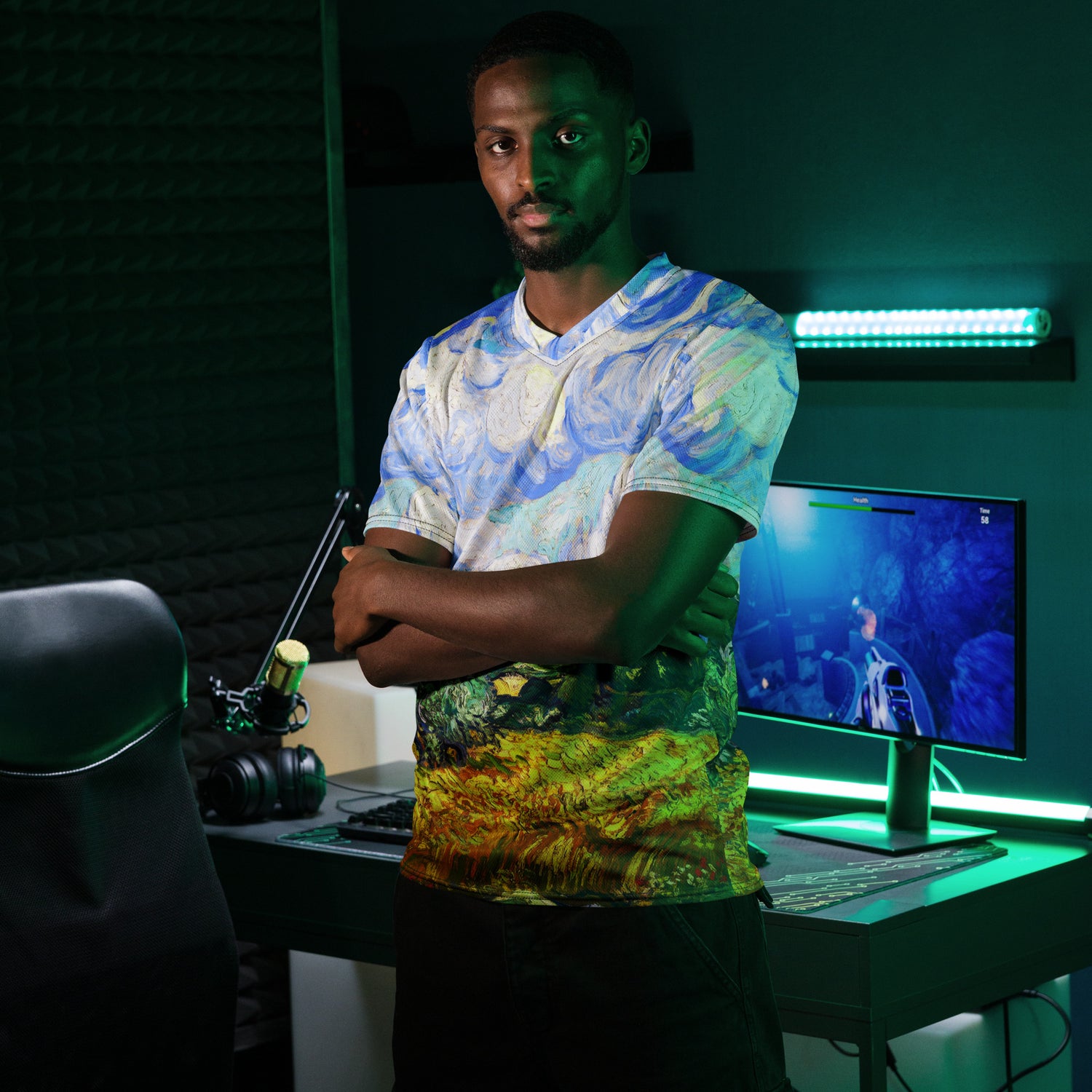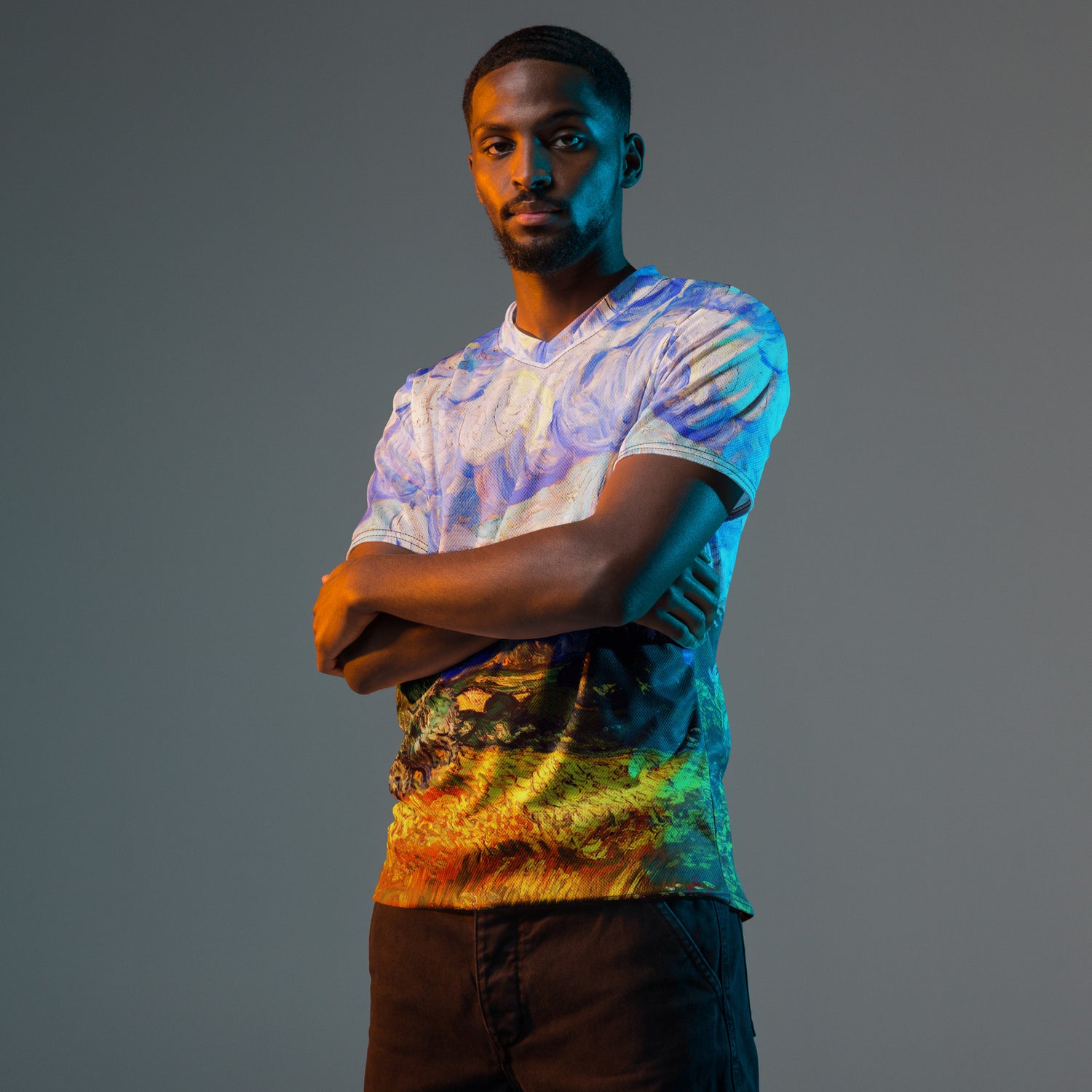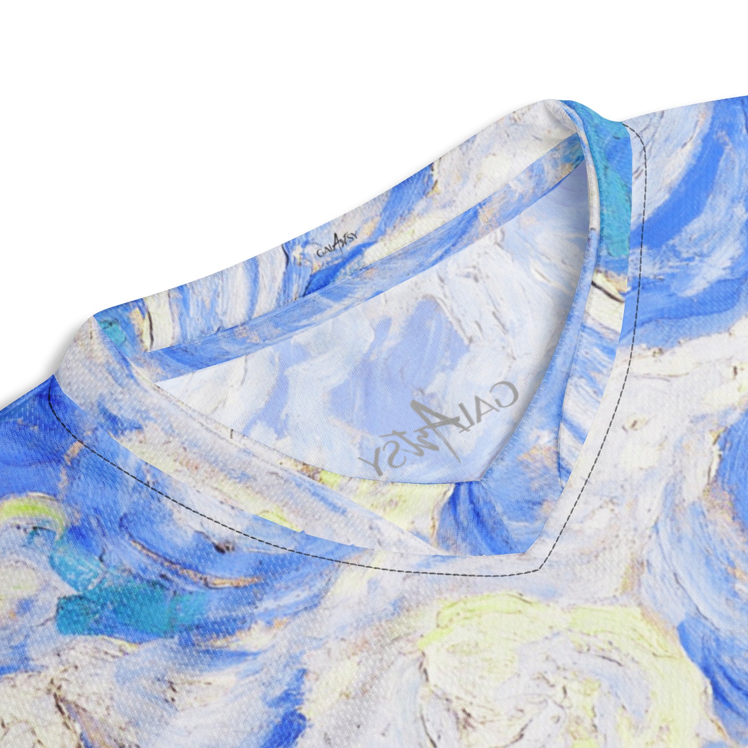 Looking for the perfect sports jersey? We have you covered—made of 100% recycled polyester fabric, this shirt is breathable, moisture-wicking, and has a double-layered v-neck collar that creates a premium look.